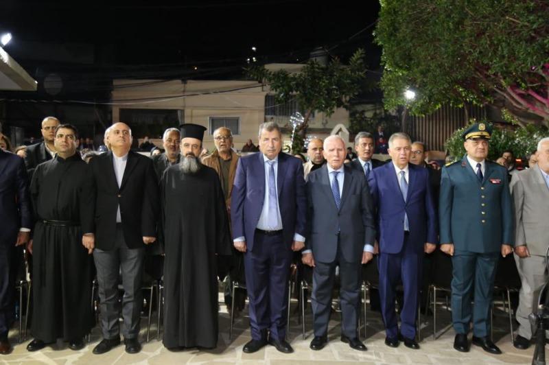 تقدم حضور الاحتفال، عضو اللجنتين التنفيذية لـ"منظمة التحرير الفلسطينية" والمركزية لحركة "فتح" عزام الأحمد، عضو اللجنة التنفيذية لـ"منظمة التحرير الفلسطينية" رئيس "اللجنة الرئاسية العليا لشؤون الكنائس في فلسطين" الدكتور رمزي خوري، سفير دولة فلسطين لدى الجمهورية اللبنانية أشرف دبور، ممثل قائد الجيش اللبناني العماد جوزاف عون، العقيد مجد عواد، أمين سر حركة "فتح" وفصائل "منظمة التحرير الفلسطينية" في لبنان فتحي أبو العردات، عضو المجلس الثوري لحركة "فتح" آمنة جبريل، عضو المجلسين المركزي والوطني الفلسطيني هيثم زعيتر، عضو المجلس الوطني الفلسطيني و"اللجنة الرئاسية العليا لشؤون الكنائس في فلسطين" طوني حلو، مدير عام دائرة العلاقات العربية في "منظمة التحرير الفلسطينية" السفير الدكتور أنور عبد الهادي، مطران بيروت وجبيل وتوابعهما للروم الملكيين الكاثوليك جورج بقعوني ممثلاً بكاهن رعية القديس جاوجيوس الأب ستليانوس غطاس، مدير شؤون وكالة "الأونروا" في لبنان بالإنابة منير منّة، ممثل المطران بولس روحانا، الخوري إيلي إبراهام، رئيس دير مار يوسف الأب فادي عقيقي، أمين سر إقليم حركة "فتح" في لبنان حسين فياض، أعضاء الإقليم وعضو قيادة حركة "فتح" في لبنان اللواء منذر حمزة.