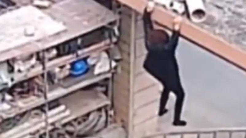 شاهد.. طفل ينقذ أمه من السقوط في آخر لحظة