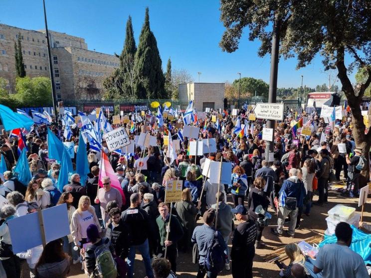 تظاهر المئات من المعارضين للحكومة الإسرائيلية الجديدة، احتجاجا على إقرار قوانينها العنصرية وخطوطها العريضة الدينية والاستيطانية واليمينية.