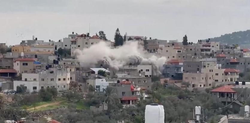 بالفيديو: الاحتلال يفجر ثلاث شقق لمنفذي عملية حاجز الجلمة في جنين