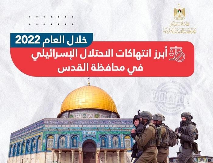 جاء ذلك في تقرير المحافظة السنوي حول انتهاكات الاحتلال الإسرائيلي في محافظة القدس للعام 2022، الذي أصدرته اليوم الإثنين، والذي كشف عن تصاعد خطير وغير مسبوق في وتيرة الانتهاكات في كافة مناحي الحياة.