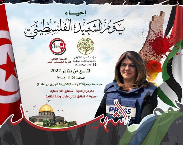 سيدة الأرض والمركز الثقافي للتراث الفلسطيني في تونس يحتفلان بيوم الشهـيد الفلسطيني وافتتاح قاعة الشهـيدة شـيرين أبو عاقلة