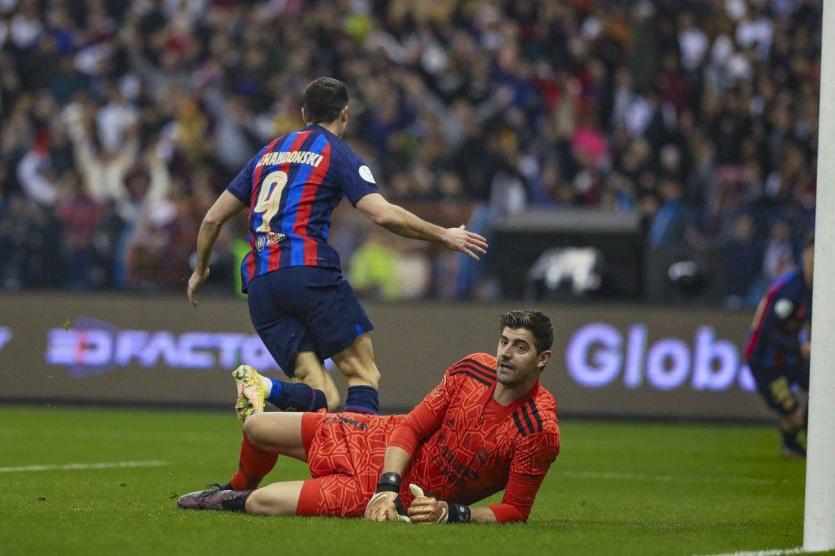 وسجل أهداف برشلونة، جافي وليفاندوفسكي وبيدري في الدقائق 33 و45 و69، وسجل لريال مدريد كريم بنزيما في الدقيقة 93