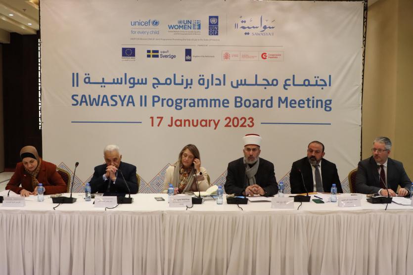 رام الله، 17 كانون الثاني/يناير 2023| عقد الاجتماع السنوي لمجلس إدارة برنامج سواسية المشترك اليوم في رام الله، برئاسة المنسقة المقيمة للأمم المتحدة ورئيس مجلس إدارة البرنامج المشترك السيدة ليين هاستينغز . حيث انعقد اجتماع مجلس الإدارة هذا العام ليجمع بين الأعضاء والشركاء الرئيسين للبرنامج من أجل تقديم لمحة عامة عن التقدم المحرز خلال عام 2022 ، ومناقشة الاتجاه الاستراتيجي وإقرار خطة عمل عام 2023 لبرنامج سواسية المشترك.