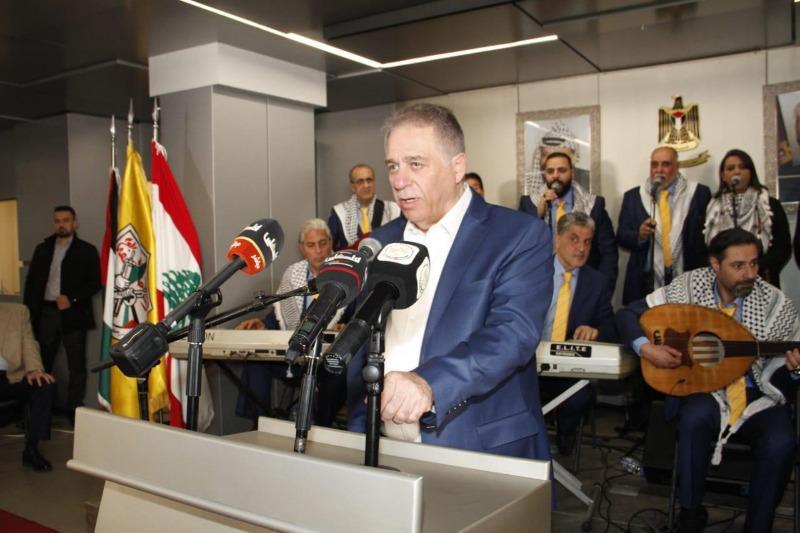 وحيّا في كلمته شهداء الثورة الفلسطينية وفي مقدمهم الرئيس الشهيد ياسر عرفات، موجّهاً التحية إلى القوى الوطنية اللبنانية التي وقفت وتقف دائماً إلى جانب القضية الفلسطينية، هذه القوى التي تحرص على فلسطين وقضيتها كما إخوانهم الفلسطينيين.