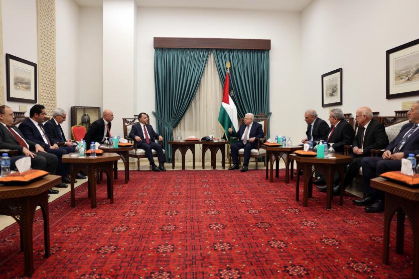 استقبل الرئيس محمود عباس، اليوم الجمعة، في مقر الرئاسة بمدينة رام الله، رئيس وأعضاء المحكمة الدستورية التركية، بحضور القنصل العام التركي في القدس.