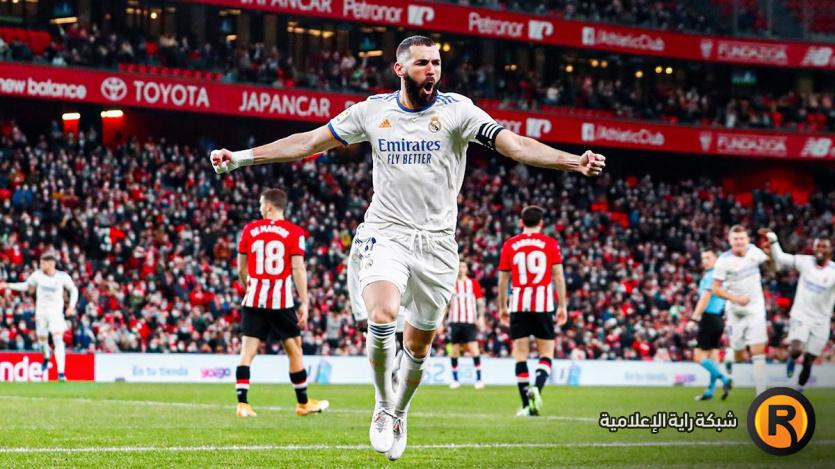 وسجل هدفي ريال مدريد، كريم بنزيما وتوني كروس في الدقائق 24 و90.