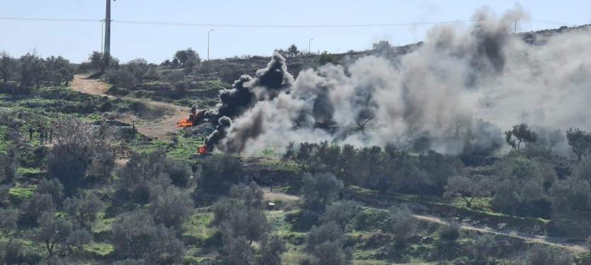 وأطلق جنود الاحتلال قنابل الصوت والغاز المسيل للدموع صوب المواطنين، ما أدى لإصابة عدد منهم بالاختناق.