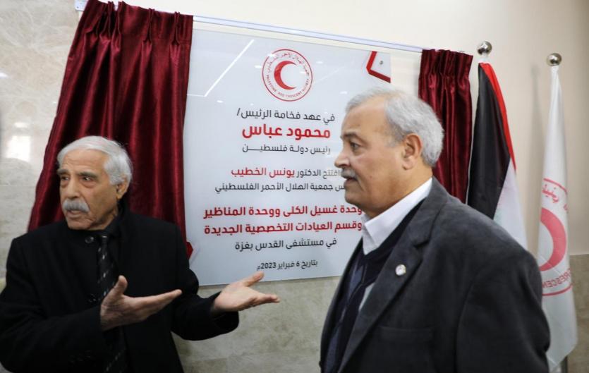 افتتح، الإثنين، رئيس جمعية الهلال الأحمر الفلسطيني، يونس الخطيب، برفقة المحافظ ابراهيم ابو النجا، محافظ غزة، وعدد من الشركاء في الحركة الدولية للصليب الأحمر والهلال الأحمر، وممثلي عن الفصائل الوطنية، وشخصيات اعتبارية، وحدتي غسيل الكلى، والمناظير، وقسم العيادات التخصصية الجديدة في مستشفى القدس، بمحافظة غزة، والذي من المقرر أن تساند القطاع الصحي في المحافظات الجنوبية، بقدرات طبية واسعة، وتجهيزات طبية حديثة.