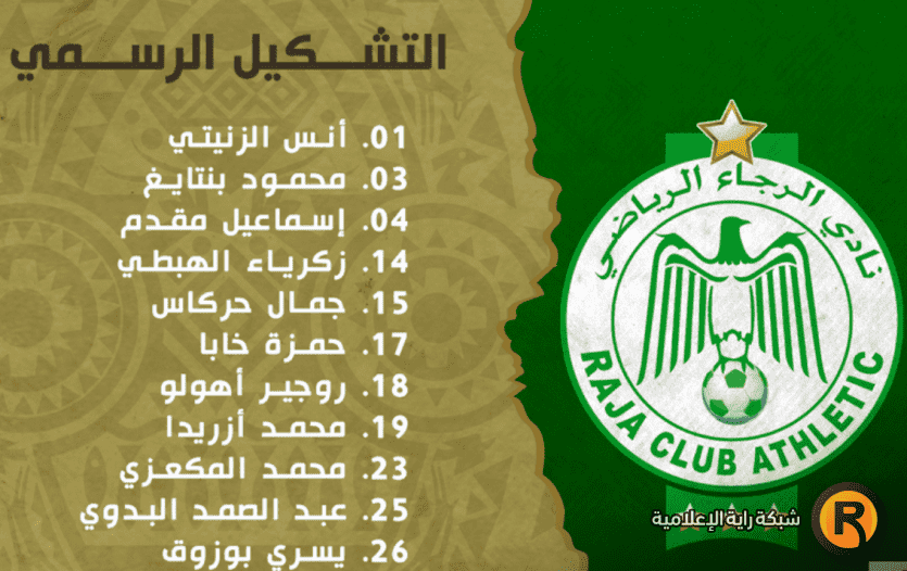 سجل خماسية الرجاء كل من حمزة خابا، جمال حركاس، محمد زريدة، يسري بوزوق وروجير أهولو، في الدقائق (5، 11، 38، 59 و71).