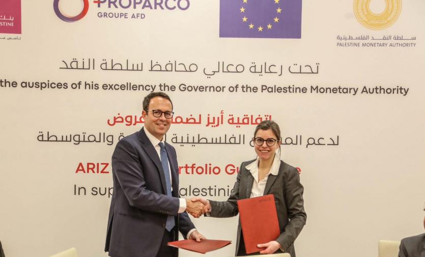 وقع بنك فلسطين ومؤسسة بروباركو (Proparco)الذراع الاستثماري للوكالة الفرنسية للتنمية "AFD ، وبتمويل من الاتحاد الأوروبي، اتفاقية تجديد لدعم وتمويل المشاريع الصغيرة والمتوسطة، من خلال محفظة ARIZ MENA، بقيمة 9.2 مليون دولار أمريكي.