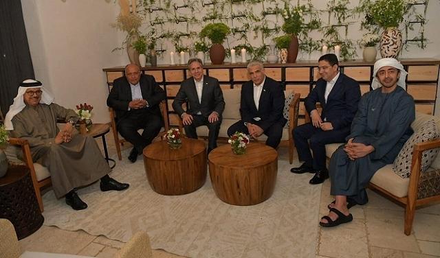 و"منتدى النقب" هو اجتماع لوزراء خارجية الولايات المتحدة، إسرائيل، الإمارات، البحرين، المغرب ومصر. وبادر إلى هذا "المنتدى" وزير الخارجية الإسرائيلي السابق، يائير لبيد، وعُقد لأول مرة في بلدة "سْديه بوكير" في النقب، حيث ضريح مؤسس إسرائيل، دافيد بن غوريون. وتقرر حينها عقد اجتماعات مشابهة سنويا.