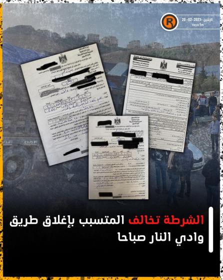 وتنفي المخالفات الصادرة من قبل الشرطة، الإداعات التي تقول أن حادثة إغلاق طريق وادي النار مفتعلة، أو بتدبير مسبق لإغلاق الطريق بالتزامن مع مسيرة المعلمين.