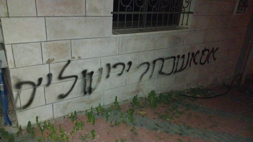 مستوطنون يعطبون إطارات ويخطون شعارات عنصرية في بيت إكسا