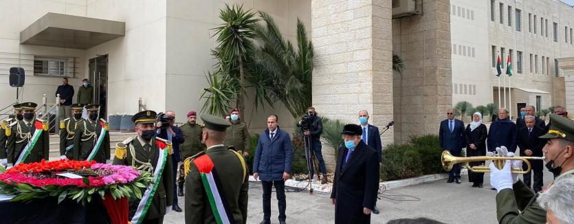 وألقى الرئيس عباس، نظرة الوداع الأخيرة على جثمان المناضل الوطني أحمد قريع، ووضع على نعشه إكليلا من الزهور.