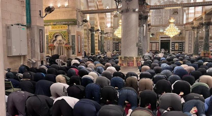 وشهدت باحات المسجد الأقصى منذ ساعات الفجر تواجداً حاشداً لأهالي القدس والداخل الفلسطيني المحتل عام 1948، ومن تمكن من الوصول للمسجد من أبناء الضفة الغربية.
