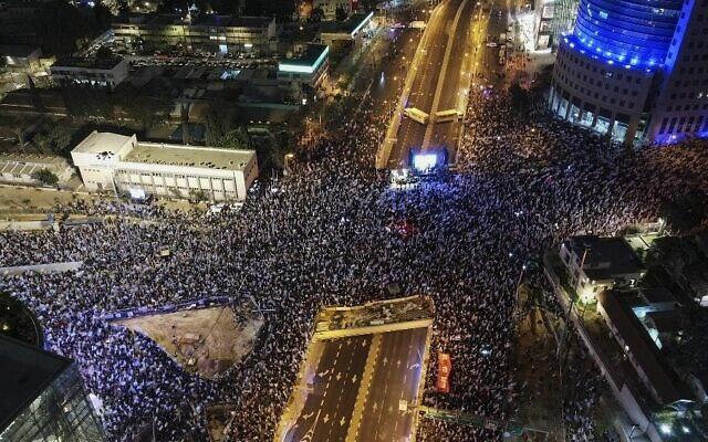 وشارك أكثر من 250 ألف شخص في تظاهرة انطلقت من ميدان "هبيما" وسط تل أبيب، باتجاه شارع "كابلان"، مرددين هتافات من ضمنها: "ديمقراطية" و"حكومة مجرمة".