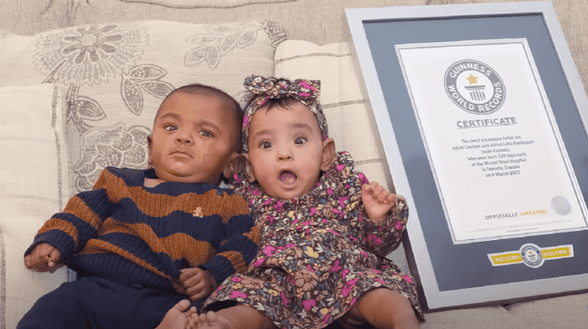 ودخل الاثنان موسوعة غينيس للأرقام القياسية باعتبارهما التوأم الأخف وزنا المولودين قبل الأوان.