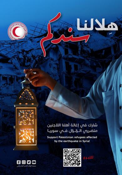 الهلال الاحمر الفلسطيني يطلق حملة "هلالنا سندكم" لإغاثة متضرري الزلزال من اللاجئين الفلسطينيين في سوريا
