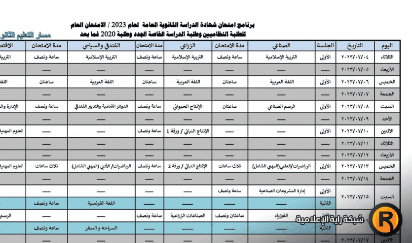 جدول امتحانات الثانوية العامة 2023 في الأردن