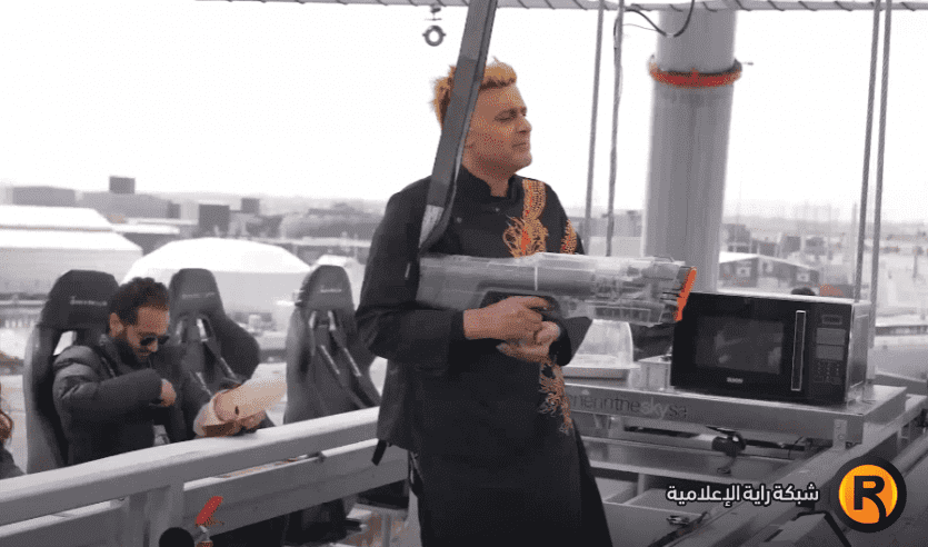 ثم يطلق رامز من مسدسه مادة سائلة أصابته، ويرى عبد العال وهو يضع يده على عينه ويصرخ قائلا: والله عيني راحت هاتلي دكتور، ثم ينهال بوصلة سباب على رامز جلال وظل ينادي ويصرخ طالبا إحضار طبيب.