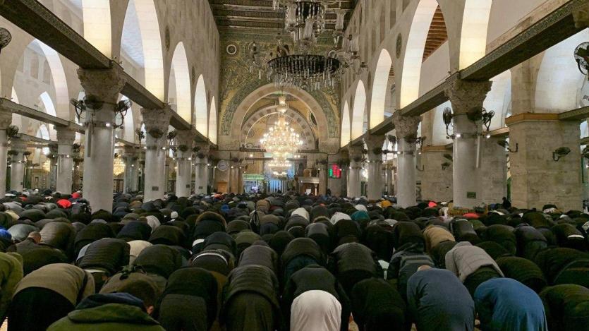 أدى نحو 20 ألف مصلٍّ صلاتي العشاء والتراويح في رحاب المسجد الأقصى المبارك، مساء اليوم الأربعاء.