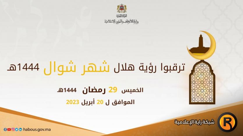 أعلنت وزارة الأوقاف والشؤون الإسلامية في المملكة المغربية، موعد مراقبة هلال شهر شوال في المغرب للعام 1444 هجري 2023 ميلادي، حيث يترقب المواطنون في البلاد الإعلان عن موعد أول أيام عيد الفطر المبارك.