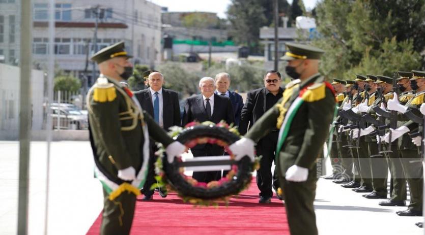 بالصور: القيادة الفلسطينية تضع أكاليل الزهور على ضريح ياسر عرفات