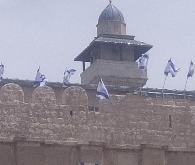 البكري يستنكر رفع علم الاحتلال على سطح وجدران الحرم الإبراهيمي
