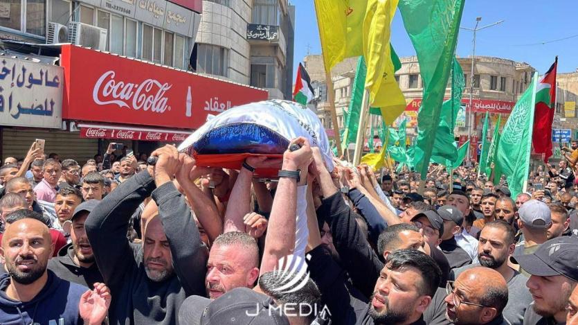 شيع الاف المواطنين ظهر اليوم الخميس، الشهداء الثلاثة (معاذ المصري، وحسن القطناني، وإبراهيم جبر) الذين ارتقوا عقب اقتحامٍ قوات الاحتلال صباح اليوم للبلدة القديمة في مدينة نابلس.