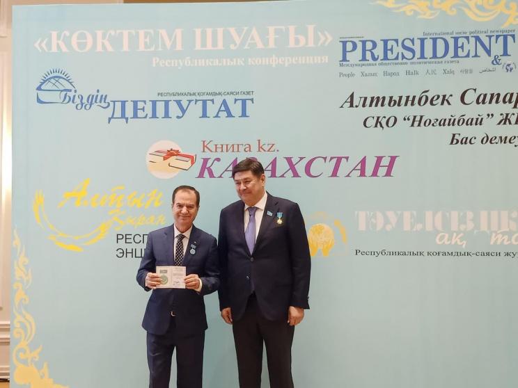 كرّم عضو مجلس الشيوخ في برلمان جمهورية كازاخستان سفير دولة فلسطين وعميد السلك الدبلوماسي العربي والأجنبي لدى جمهورية كازاخستان د. منتصر أبو زيد بوسام الصداقة والتعاون خلال حفل أقامته مجلة الرئيس الإجتماعية والسياسية الدولية الكازاخستانية “Journal the PRESIDENT International Socio-Political” ، وذلك تقديراً لجهوده في تعزيز وتطوير العلاقات "الفلسطينية-الكازاخستانية" والمجهودات التي يقوم بها السفير الفلسطيني لدفع العلاقات الثنائية بين الدولتين في جميع المجالات منذ إستلامه لمهامه الدبلوماسية كسفيراً لدولة فلسطين لدى كازاخستان ، بالإضافة إلى سعيه الدائم للمشاركة الفعالة والإيجابية للإصلاحات الداخلية التي تقوم بها كازاخستان على جميع المستويات والأصعدة ، والتي كان أخرها إشرافه كمراقباً دولياً على الإنتخابات التشريعية لمجلس الشيوخ والنواب لبرلمان جمهورية كازاخستان والإنتخابات للمجالس المحلية "البلديات" والتي أقيمت في منتصف شهر "مارس-آذار" من هذا العام 2023 ، وقبلها مشاركته كمراقباً دولياً في الإنتخابات الرئاسية والتشريعية والإستفتاء على التعديلات الدستورية.