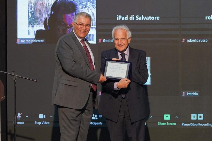 وشارك عبر الفيديو كونفرنس عدد من ممثلي الجامعات والمعاهد الإيطالية، وتحدثوا عن نشاطاتهم وعلاقاتهم الدولية في المجالات البحثية والأكاديمية في القانون وحقوق الإنسان والمرأة والعديد من الموضوعات الأخرى، وتطرقوا لمستقبل العلاقات في منطقة البحر الأبيض المتوسط، كما تخلل الحفل تكريم البرفسور "سالفو اندو" لرئيس الجامعة أ.د. عماد أبو كشك لجهوده في افتتاح المركز.