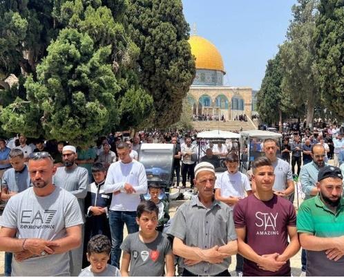 وكان الآلاف من المواطنين أدوا صلاة الفجر في رحاب المسجد الأقصى، رغم تضييقات الاحتلال، والإجراءات العسكرية المشددة التي فرضتها قواته.