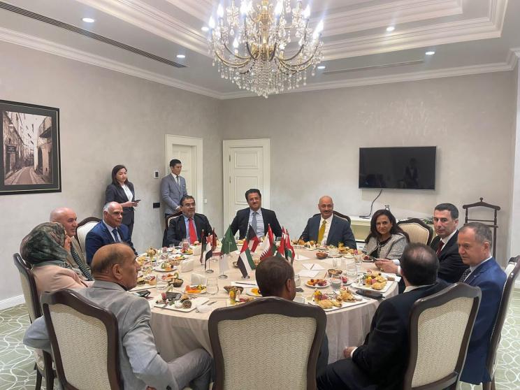وعُقد الإجتماع بحضور كل من سفراء لبنان ومصر وقطر وسلطنة عمان والإمارات والكويت والجزائر والسعودية والقائمي بأعمال العراق وليبيا والمغرب.