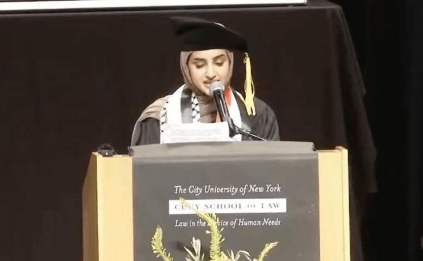 هاجم أعضاء كونغرس وسياسيون في ولاية نيويورك، فتاة امريكية من أصول عربية بعد أن انتقدت دولة الاحتلال واستمرارها في اطلاق القنابل والرصاص بشكل عشوائي على المصلين، وقتل الكبار والصغار ومهاجمة الجنائز والمقابر، خلال كلمتها في حفل التخريج السنوي لكلية القانون في جامعة مدينة نيويورك CUNY .