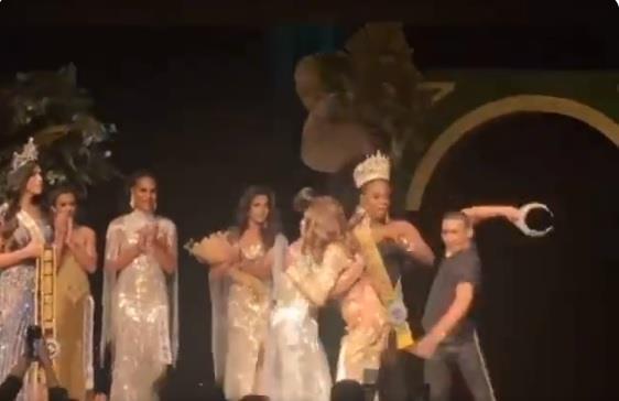 في حادثة غريبة، صعد زوج إحدى المتسابقات بحفل تتويج لملكات الجمال في البرازيل إلى خشبة المسرح وحطم التاج الملكي غاضبا لعدم فوز زوجته باللقب.