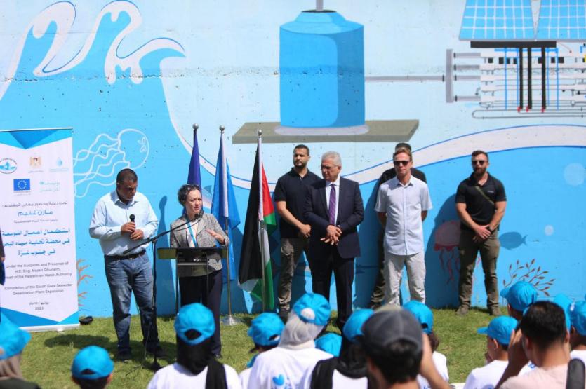 احتفل ممثلون عن الأمم المتحدة، والاتحاد الأوروبي، والحكومة، اليوم الاثنين، بانتهاء توسعة محطة تحلية مياه البحر جنوب قطاع غزة.