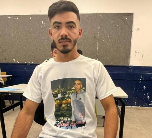 أصدقاء الفتى وديع أبو رموز ارتدوا صورة الشهيد خلال تقديمهم أول امتحانات الثانوية العامة، ليكون حاضراً بينهم رغم غيابه.