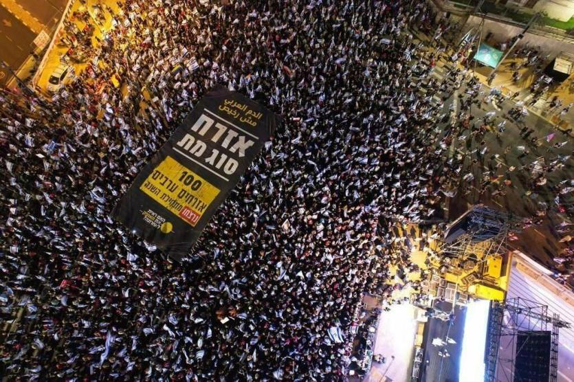 وتظاهر عشرات الآلاف من الإسرائيليين في تل أبيب وحيفا والخضيرة ورحوفوت وكريات شمونة ورعنانا ونهاريا وكفار سابا وبئر السبع وأشدود وإيلات، وعشرات المواقع الأخرى.
