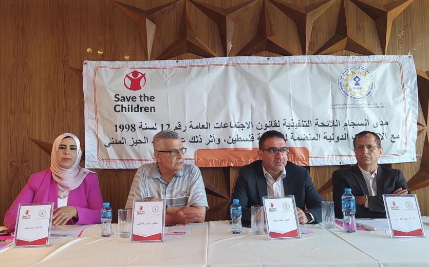 نظم مركز إعلام حقوق الإنسان والديمقراطية "شمس" بالتعاون مع مؤسسة إنقاذ الطفل جلسة حوارية حول مدى انسجام اللائحة التنفيذية لقانون الاجتماعات العامة رقم (12) لسنة 1998 مع الاتفاقيات الدولة المنضمة لها فلسطين، وأثر ذلك على تقييد الحيز المدني.