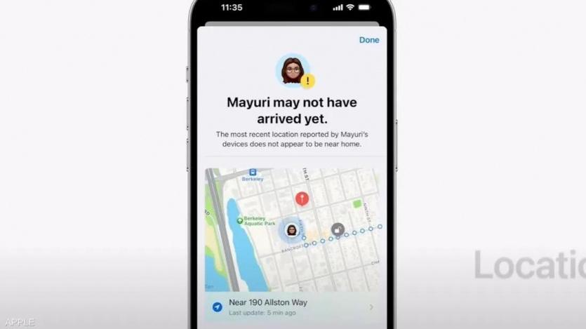 ستدخل شركة آبل تحديثا جديدا على هواتف آيفون، يعرف العائلة أو الأصدقاء المقربين، لحظة وصول شخص مهم لهم لوجهته، مما يزيد حالة الاطمئنان، ويرفع الحاجة عن الاستعانة بالرسائل مثل "هل وصلت للبيت؟".
