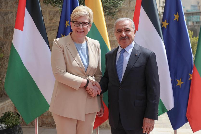 ودعا رئيس الوزراء، ليتوانيا إلى الاعتراف بدولة فلسطين من منطلق إيمانها بحل الدولتين، بهدف حمايته وسط التدمير الإسرائيلي الممنهج لإمكانية تنفيذه، كذلك للخروج بمبادرة سلام مبينة على مبادرة السلام العربية، لإنهاء الاحتلال، وإقامة الدولة الفلسطينية على حدود عام 1967 وعاصمتها القدس.