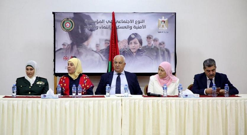 جاء ذلك خلال افتتاح الجلسة الحوارية التي عقدت بالتعاون بين وزارة الداخلية، وقوات الأمن الوطني، وفريق الدعم البريطاني، بعنوان النوع الاجتماعي في المؤسسة الأمنية "انتماء واحتياج"، بحضور محافظ محافظة رام الله والبيرة ليلى غنام، ووزيرة المرأة امال حمد، ومدير عام الخدمات الطبية العسكرية اللواء ميسون البنا، ووكيل وزارة الداخلية يوسف حرب.
