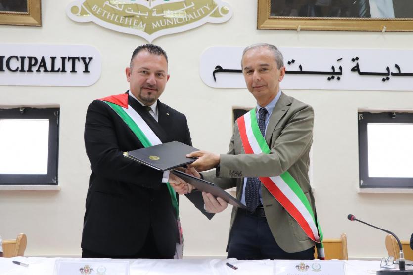 وقعت بلديتا بيت لحم، وبرا الإيطالية، اليوم الخميس، اتفاقية توأمة في إطار تعزيز التعاون اللامركزي بينهما.