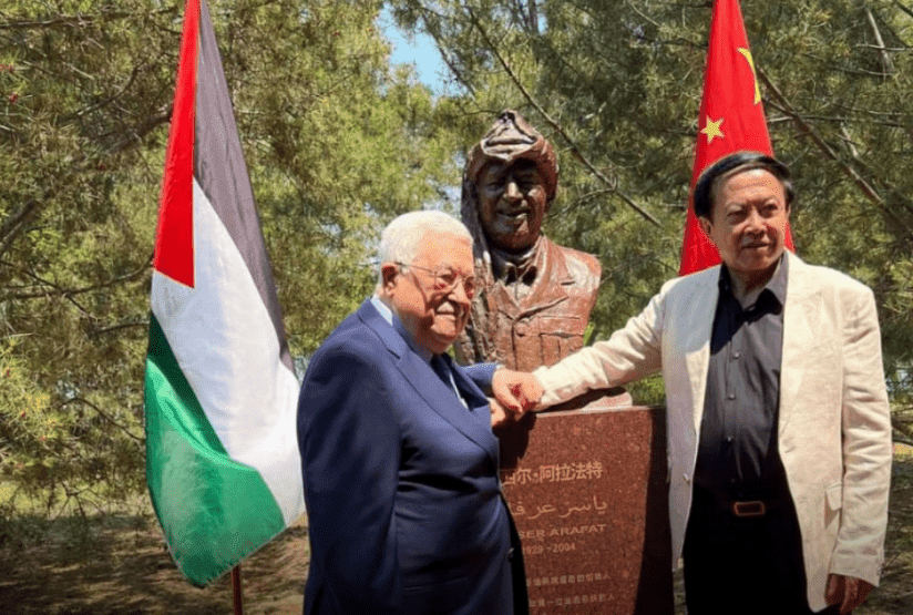 أزاح الرئيس محمود عباس، اليوم الجمعة، الستار عن مجسم تذكاري للرئيس ياسر عرفات في حديقة المتحف الصيني في بكين، مختتما بذلك زيارة دولة رسمية إلى جمهورية الصين الشعبية استمرت ثلاثة أيام.