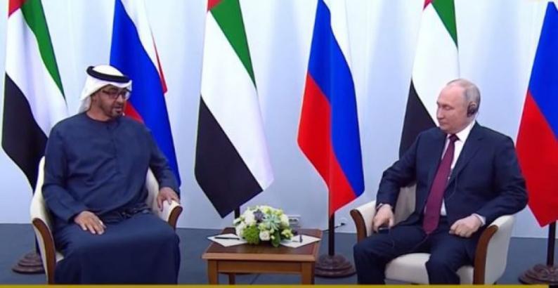 وشكر بوتين محمد بن زايد آل نهيان لإسهامه في حل عدد من القضايا ذات الطابع الإنساني في خضم الصراع الأوكراني، لا سيما فيما يتعلق بتبادل الأسرى.