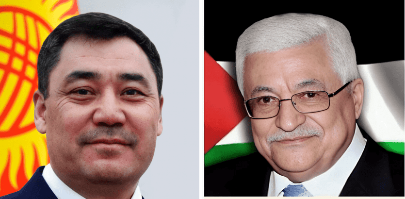 توقف رئيس دولة فلسطين محمود عباس، في طريق عودته من الصين، في جمهورية قرقيزيا، حيث كان في استقباله على أرض المطار رئيس قرقيزيا صدير جباروف.