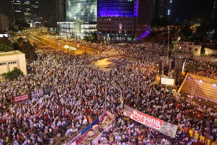 وكما جرت العادة في الأسابيع الماضية، انطلقت تظاهرات من رمات غان وجفعاتيم وميدان ديزنغوف، وصولا إلى موقع الاحتجاج الرئيسي في شارع "كابلان" في تل أبيب.