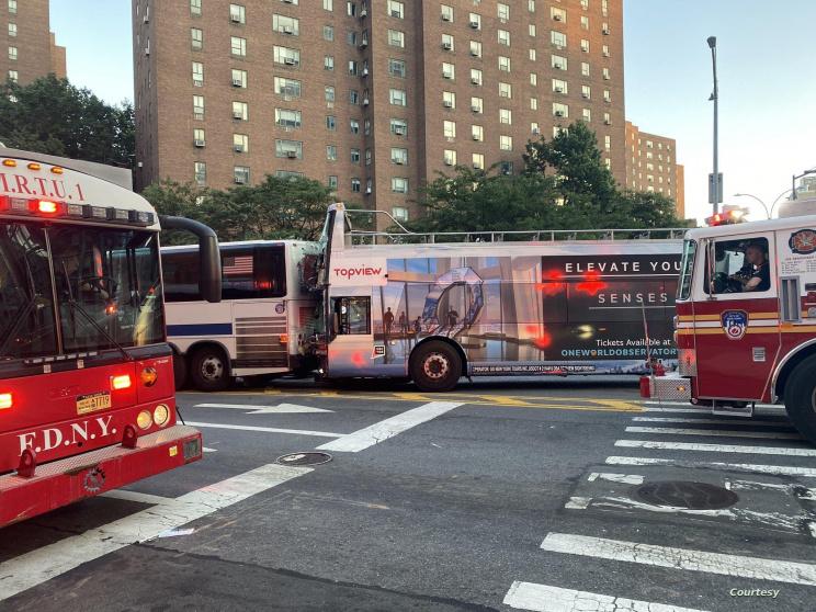 أدى تصادم حافلتين تقل واحدة منهما سياحا في حي مانهاتن بنيويورك إلى جرح أكثر من ثمانين شخصًا نقل 18 منهم إلى المستشفى لكن إصاباتهم ليست خطيرة، كما ذكرت إدارة الإطفاء.