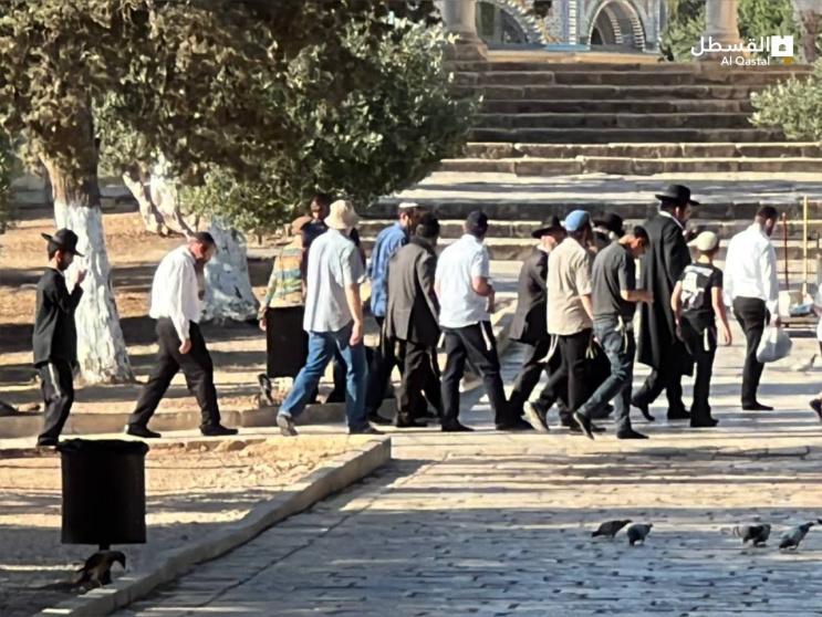 وقال شهود عيان إن مستوطنين اقتحموا "الأقصى" على شكل مجموعات متتالية، وتجولوا في الباحات الشرقية، قبل أن يغادروا من جهة باب السلسلة، وتلقَّوا شروحات عن "الهيكل" المزعوم.